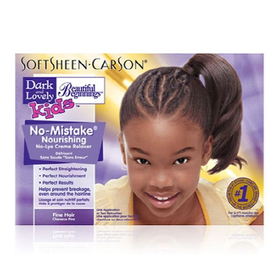 Dark and Lovely Kids Beautiful Beginnings No-Mistake® Nourishing No-Lye Crème Relaxer provides the desired straightness while nourishing your child's hair. Dark and Lovely Kids Beautiful Beginnings' Perfect Performance Technology™ gives perfect measuring and easy mixing every time. Kids get the perfect relaxer strength for their hair type – and mothers get peace of mind.